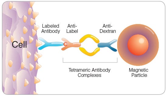 Figure 3. Tetrameric Antibody Complex (TAC) Crosslinking a Cell to a Dextran-Coated Magnetic Particle