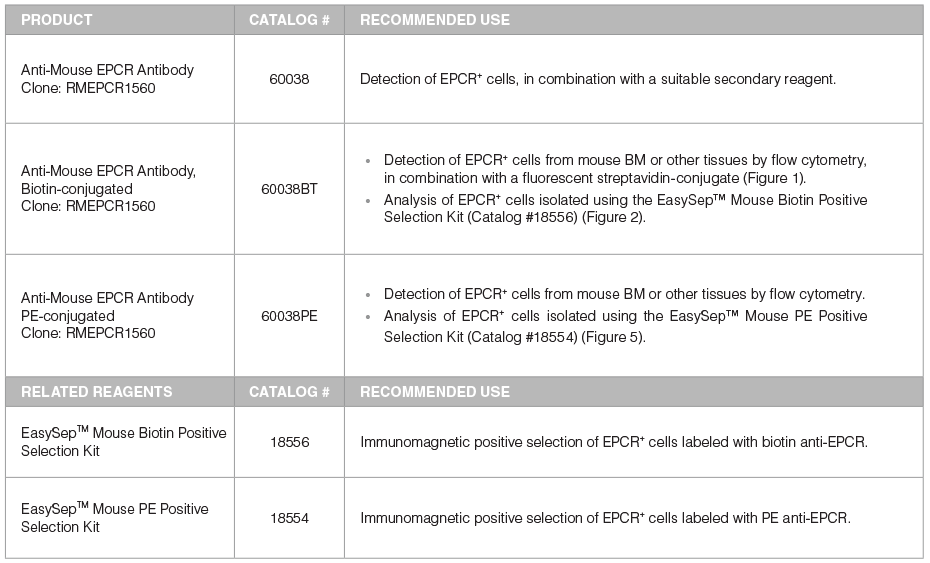Table 1. Products for Detecting and Selecting EPCR+ Cells