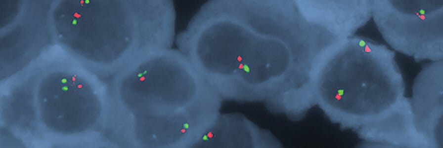 分子细胞遗传学技术(例如FISH)是表征多发性骨髓瘤常用的工具。FISH使用核酸探针来检测和定位染色体上是否存在特定的DNA序列。FISH检测中核酸探针检测基因组异常的能力有限。因此,科学家们正在开发其他更高分辨率的技术(例如,基于微阵列的基因组谱分析,基因组测序和基因表达谱分析),与FISH结合用于多发性骨髓瘤的检测4,5,6。