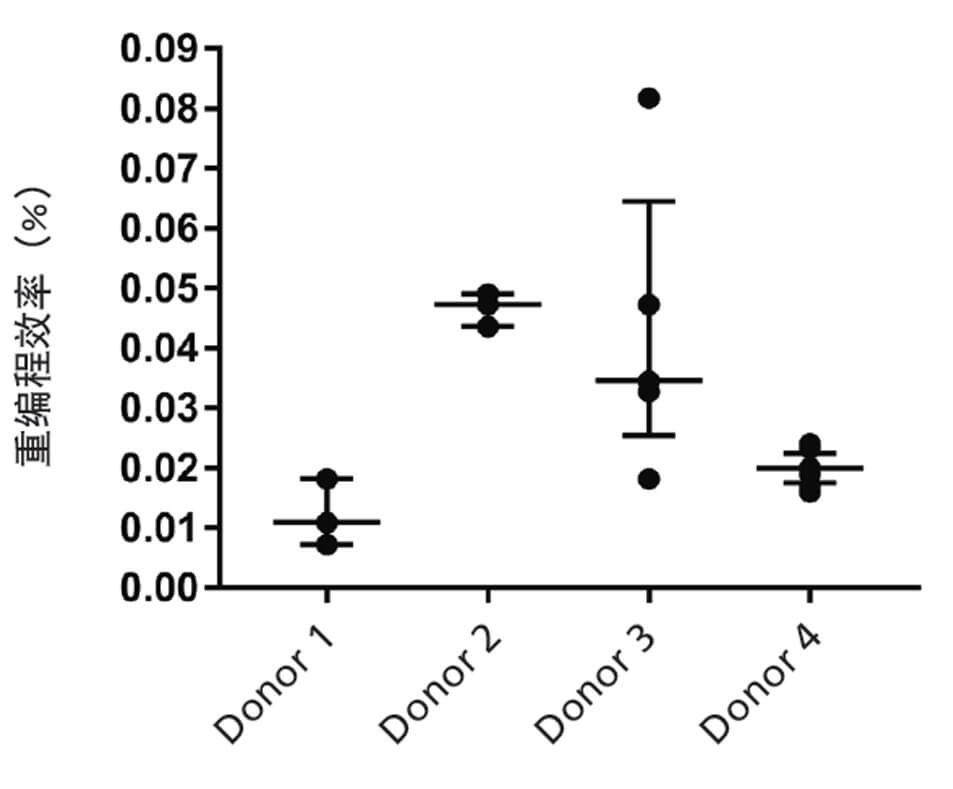 从四个不同供体(25-55岁)的样本中获取尿液衍生细胞,使用游离性载体(OCT-4 ,SOX2,KLF-4,LIN-28,L-MYC)系统在ReproTeSR™中对细胞进行重编程。数据表 示为中位数±四分位数(median ± interquartile)范围,每个供体样品的n≥3。