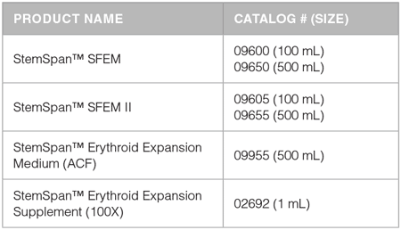 StemSpan™ Media and Supplements for the Expansion and Differentiation of Erythroid Progenitor Cells