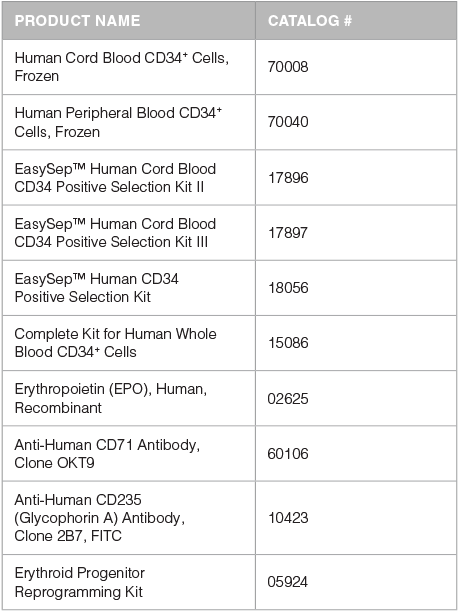 *Products included in the Erythroid Progenitor Reprogramming Kit.